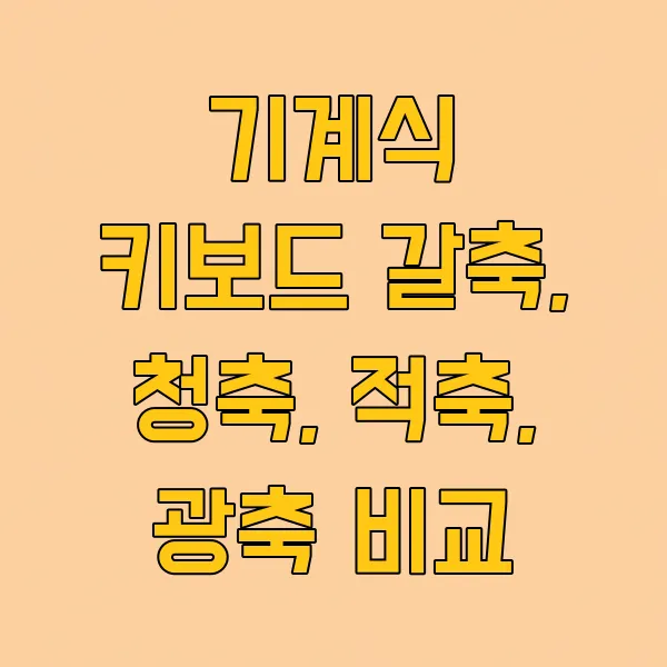 청축의 가장 큰 매력인 '명확한 피드백'은 빠른 타이핑이나 타자 연습을 할 때 오타를 줄여주고 타격감을 극대화해주지만, 그만큼 소음이 크다는 단점도 있어요. 늦은 밤이나 조용한 사무실에서는 사용하기 어려울 수 있으니, 이 점은 꼭 고려하셔야 해요. 또한, 다른 축에 비해 키압이 조금 높은 편이라 장시간 사용 시 손가락에 피로가 쌓일 수도 있답니다.