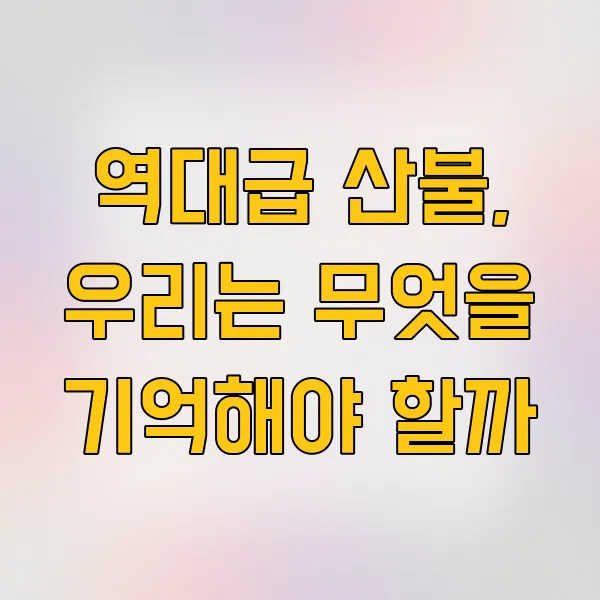 면책 조항 : 본 콘텐츠는 일반 정보 제공을 목적으로 하며, 특정 산불 사건의 상세한 경위 및 원인 분석은 공식 발표 자료를 참고하시기 바랍니다. 산불 예방 및 대처에 관한 내용은 관련 기관의 지침을 따르시기 바랍니다.